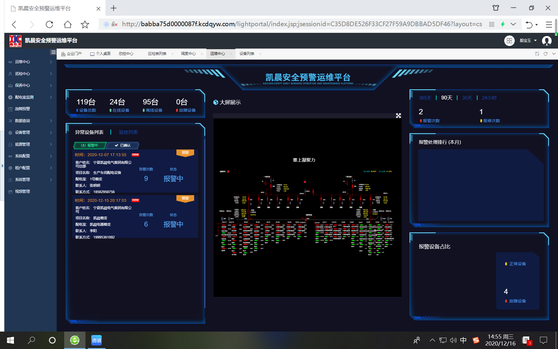基于電氣安全的考慮,防范電氣設(shè)備事故的發(fā)生,傳統(tǒng)線下運維模式已無法滿足市場和安全需求,迫切需要運用互聯(lián)網(wǎng)和大數(shù)據(jù)技術(shù),配套智能化線上運維管理和服務(wù)平臺,提供全新運維服務(wù),從源頭杜絕電氣設(shè)備事故?!?G+電力遠(yuǎn)程預(yù)警運營服務(wù)平臺”是建立在凱晨電氣自主研發(fā)核心感知芯片的上層應(yīng)用,并結(jié)合5G互聯(lián)網(wǎng)、物聯(lián)網(wǎng)技術(shù)及大數(shù)據(jù)資源,為廣大企業(yè)的配電運維提供全面的解決方案,實現(xiàn)真正的電氣安全及智能化管理。