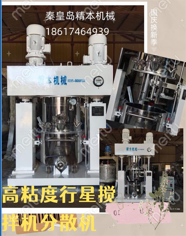 行星攪拌機(jī)通常有2個(gè)或3個(gè)多層折頁式槳葉,槳葉在公轉(zhuǎn)的同時(shí)也自轉(zhuǎn),使物料上下及四周流動(dòng),從而可在很短時(shí)間內(nèi)達(dá)到混合效果。行星攪拌機(jī)缸體內(nèi)壁為大型立車精加工,再經(jīng)大型拋光機(jī)自動(dòng)拋光,確保行星架上的活動(dòng)刮刀在旋轉(zhuǎn)時(shí),把缸體內(nèi)壁上的物料完全刮掉;該機(jī)特別適合膏體、高黏度、高密度的物料溶解、混合、混煉、聚合等。